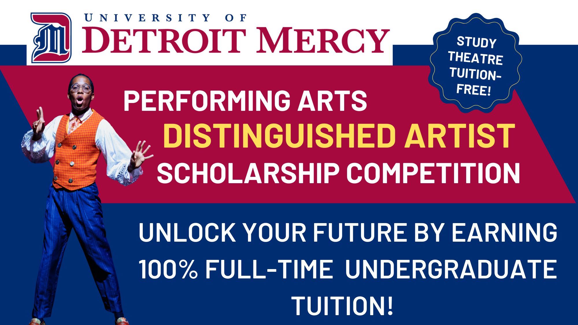 - Must maintain a 3.0 GPA and Theatre major while a student at Detroit Mercy. Other performing arts scholarships available up to $20,000 off tuition per year.